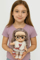 Bring home a bundle of cuteness with this 27 cm Baby Doll, crafted with a soft silicone body and dressed in a cozy knit winter outfit. With its adorable round spectacles, curly greyish-lavender hair, and fluffy faux fur vest, this doll is designed to charm children and collectors alike. The look is complete with a miniature shoulder handbag and lace-trimmed leggings, making it an ideal pretend-play companion for your child.